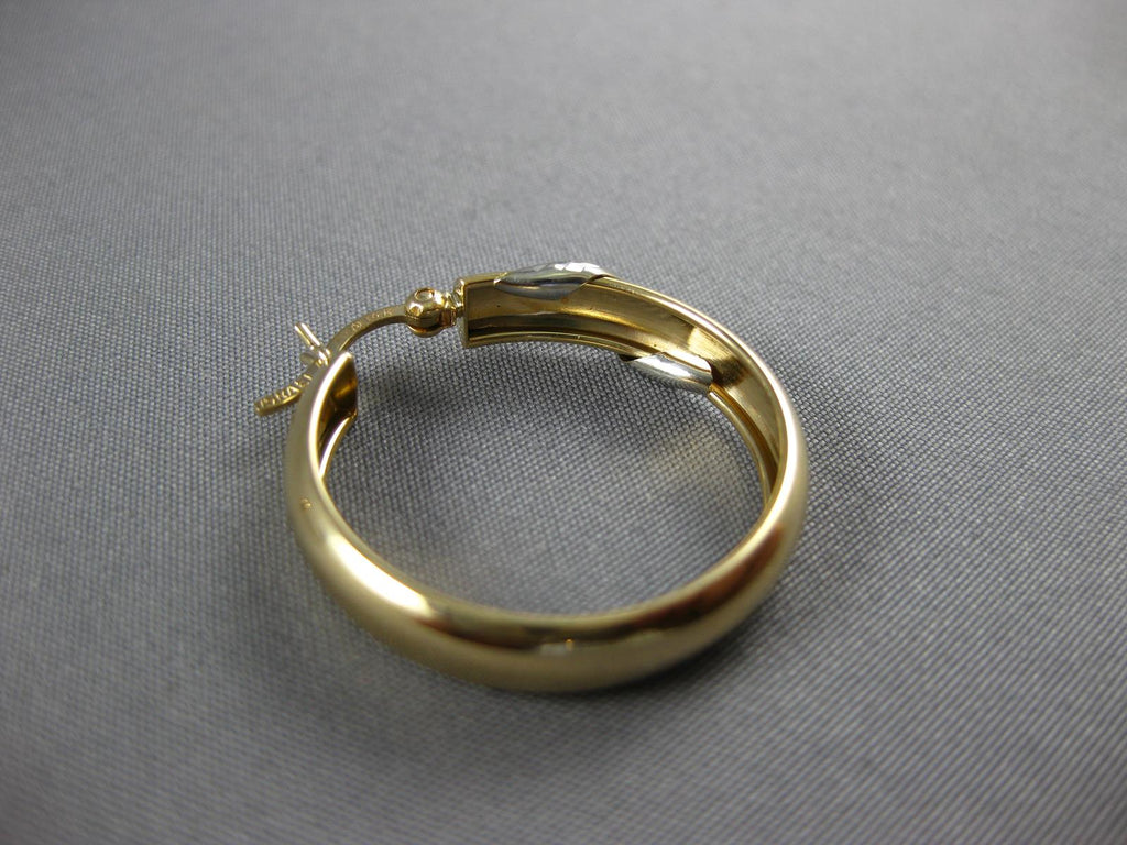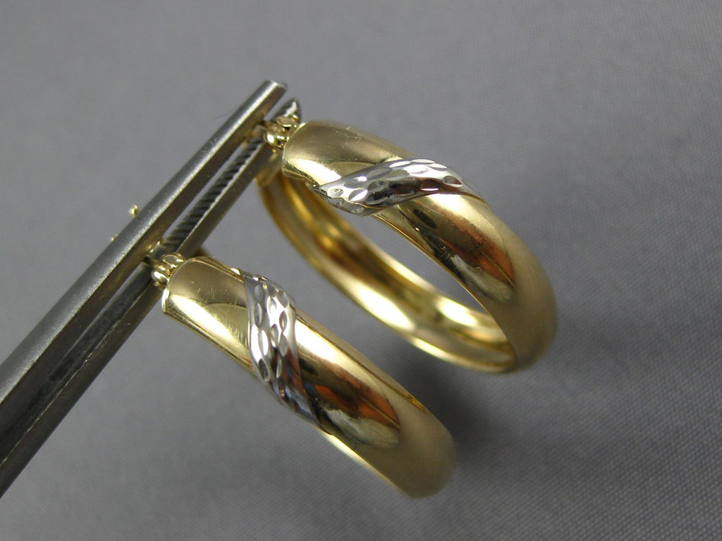 ESTATE 14KT TWO TONE GOLD 3D CLASSIC DIAMOND CUT HOOP HANGING EARRINGS #26992