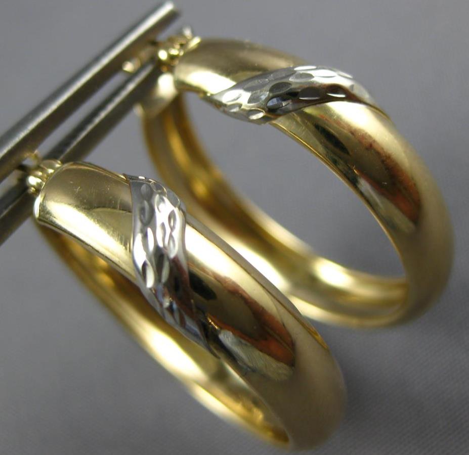 ESTATE 14KT WHITE AND YELLOW  GOLD HOOP HANGING  EARRINGS. 3D CLASSIC DIAMOND CUT  DESIGN. MEASURES 24mm WIDE. WRITTEN APPRAISAL AVAILABLE. COMES IN A PRESENTABLE GIFT BOX.