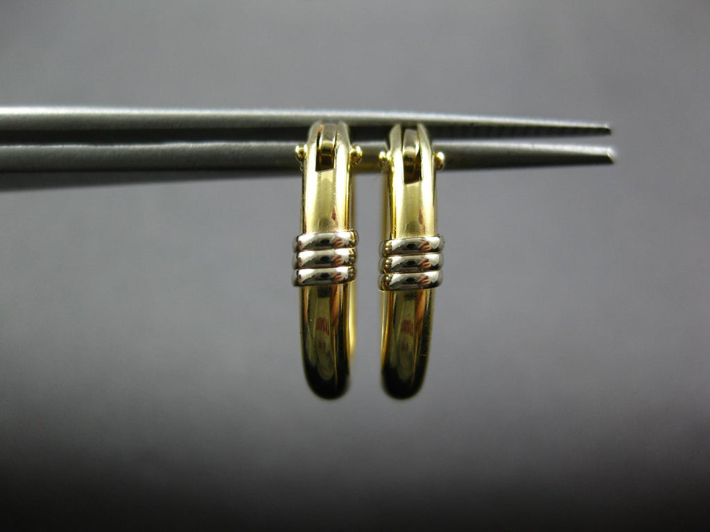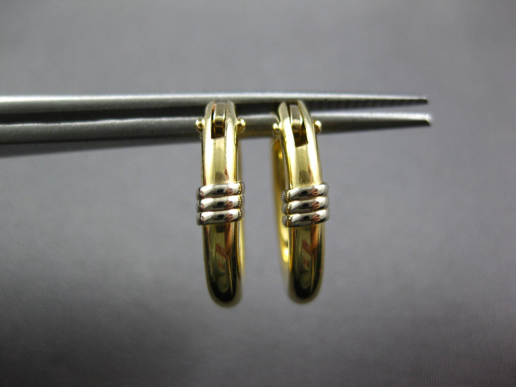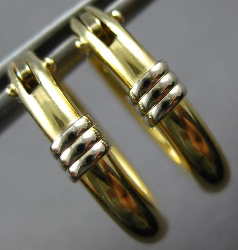 ESTATE 14KT WHITE AND YELLOW GOLD HANGING EARRINGS. 3D CLASSIC OVAL DESIGN. MEASURES 18mm X 16mm X 4mm. WRITTEN APPRAISAL AVAILABLE. COMES IN A PRESENTABLE GIFT BOX.