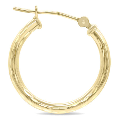 ESTATE 14KT YELLOW GOLD 3D CLASSIC HAMMERED LOOK DESIGN HOOP HANGING EARRINGS