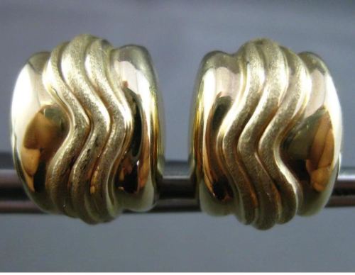 ESTATE 14KT YELLOW GOLD 3D SHINY AND MATTE TRI WAVE SQUARE CLIP ON EARRINGS