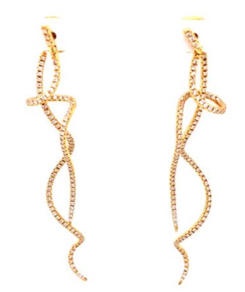 ESTATE 18KT YELLOW GOLD HANGING EARRINGS. 3D LOVE KNOT SNAKE DESIGN. DIAMONDS ARE F/G COLOR, VSSI CLARITY 1.65 CARATS. WRITTEN APPRAISAL AVAILABLE. COMES IN A PRESENTABLE GIFT BOX.