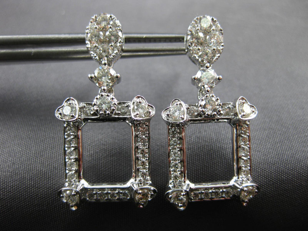 ESTATE 1.72CT DIAMOND 14KT WHITE GOLD 3D OPEN SQUARE OVAL HANGING EARRINGS