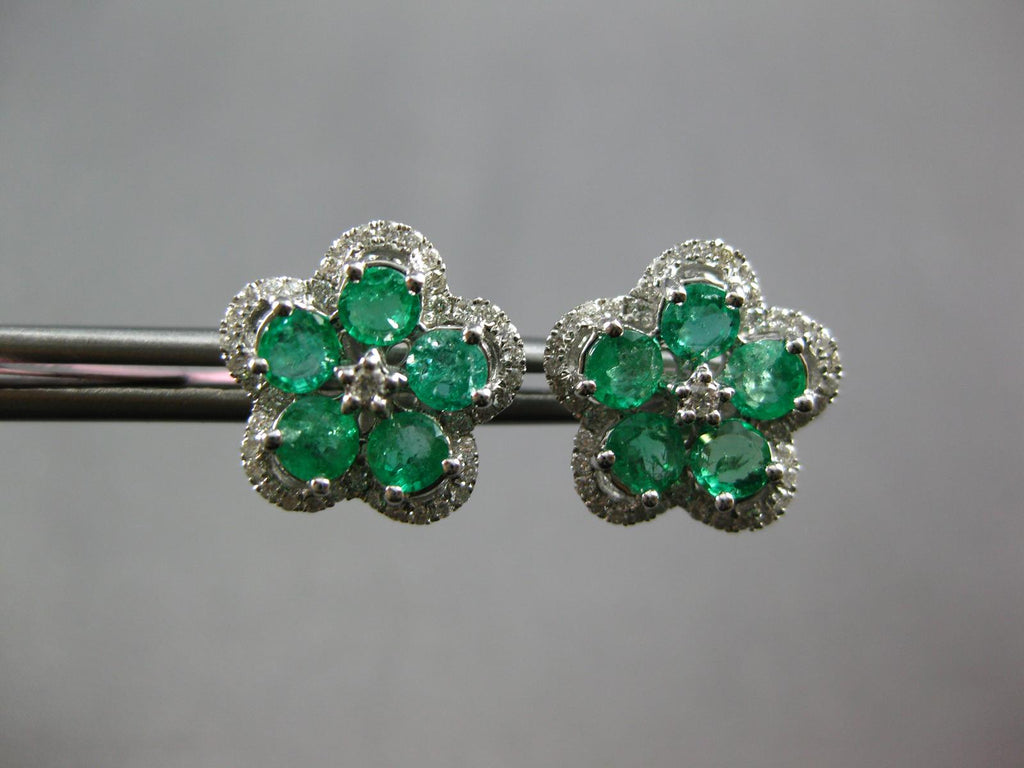 ESTATE 1.80CT DIAMOND & AAA EMERALD 18KT WHITE GOLD CLASSIC FLOWER STUD EARRINGS