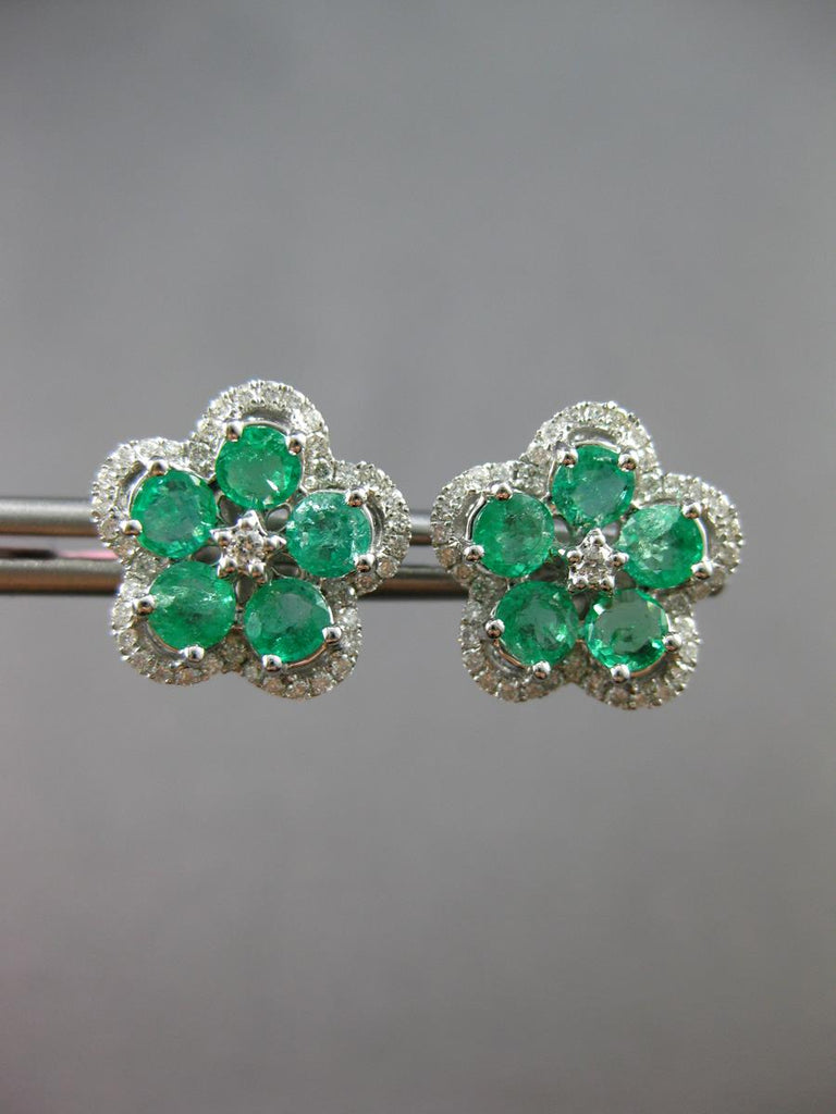 ESTATE 18KT WHITE GOLD STUD EARRINGS. 3D CLASSIC FLOWER DESIGN. DIAMONDS ARE F/G COLOR, VS CLARITY .33 CARATS. AAA EMERALDS ARE 1.47 CARATS. MEASURES 11mm X 11mm. WRITTEN APPRAISAL AVAILABLE. COMES IN A PRESENTABLE GIFT BOX.