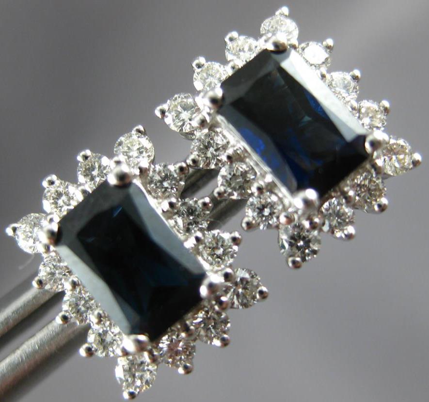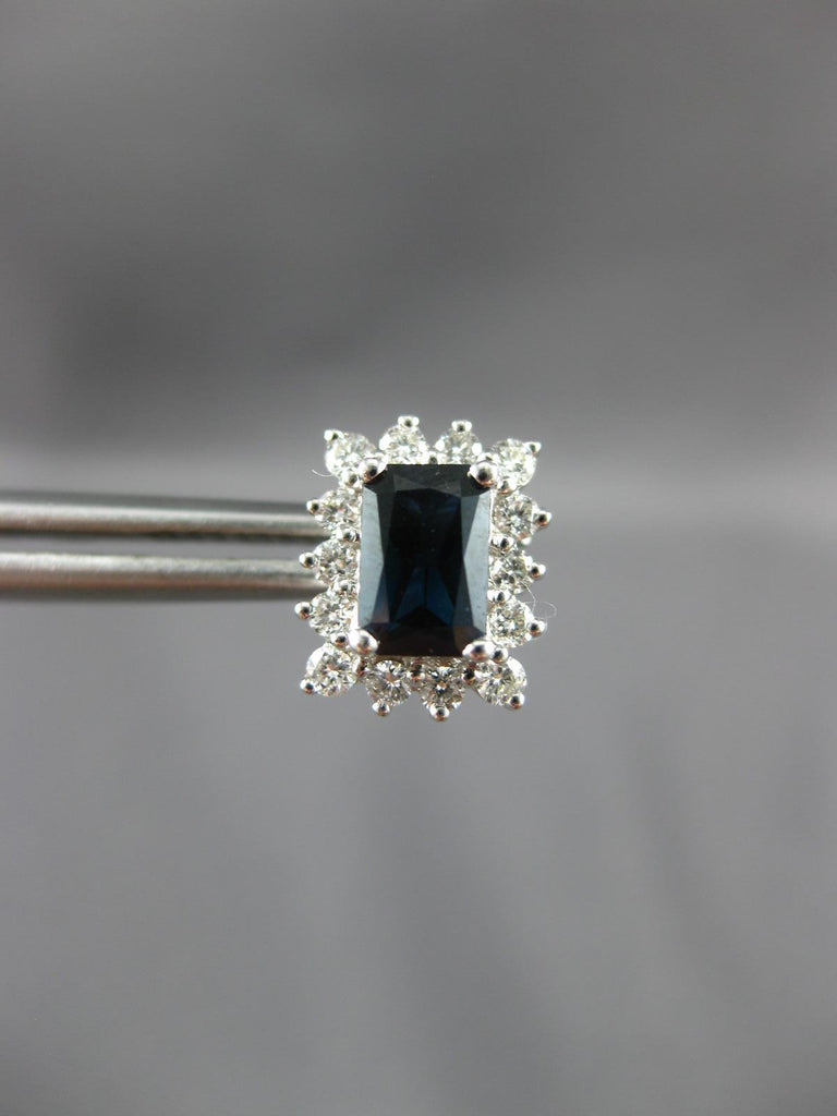 ESTATE 14KT WHITE GOLD STUD EARRINGS. 3D CLASSIC HALO DESIGN. ROUND DIAMONDS ARE F/G COLOR, VSSI CLARITY .42 CARATS. AAA EMERALD CUT SAPPHIRES ARE 1.41 CARATS. MEASURES 9mm X 7mm. WRITTEN APPRAISAL AVAILABLE. COMES IN A PRESENTABLE GIFT BOX.