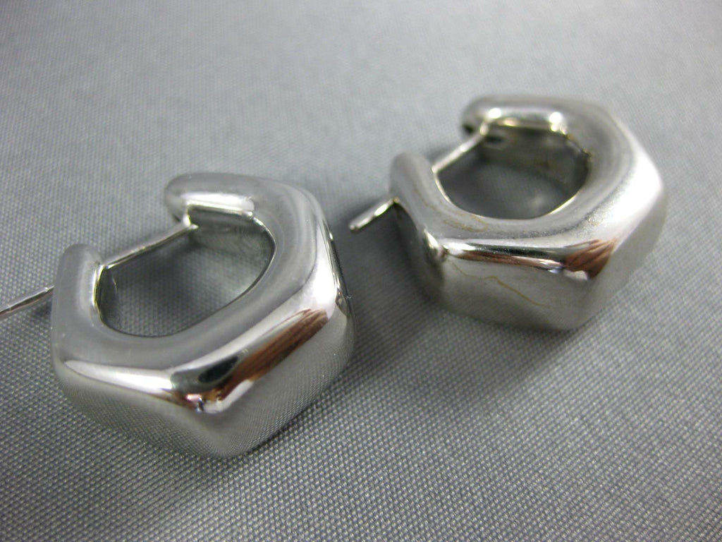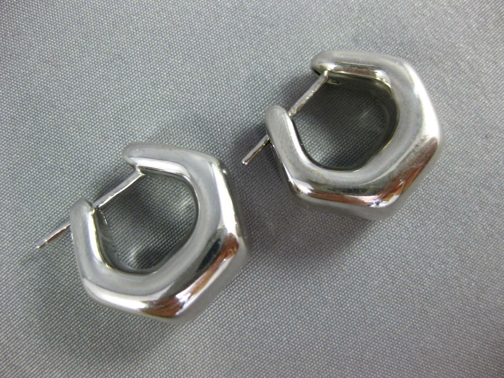 ESTATE 18KT WHITE GOLD 3D ITALIAN HANDCRAFTED HEXAGON HOOP EARRINGS #25545