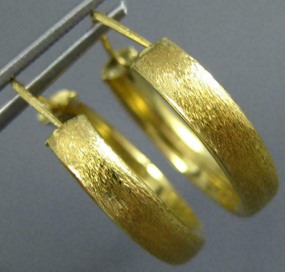 ESTATE 18KT YELLOW GOLD FLOATING HOOP EARRINGS. 3D CLASSIC MATTE DESIGN. MEASURES 23mm X 4mm WIDE. WRITTEN APPRAISAL AVAILABLE. COMES IN A PRESENTABLE GIFT BOX.
