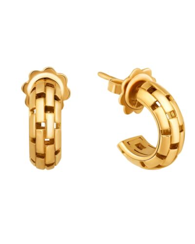 ESTATE 18KT YELLOW GOLD HANGING EARRINGS. 3D RECTANGULAR LINK UMBRELLA DESIGN. WRITTEN APPRAISAL AVAILABLE. COMES IN A PRESENTABLE GIFT BOX.