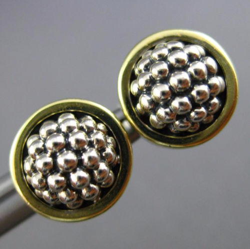 ESTATE 18KT YELLOW GOLD & 925 SILVER CLASSIC ROUND CLUSTER FLOWER STUD EARRINGS