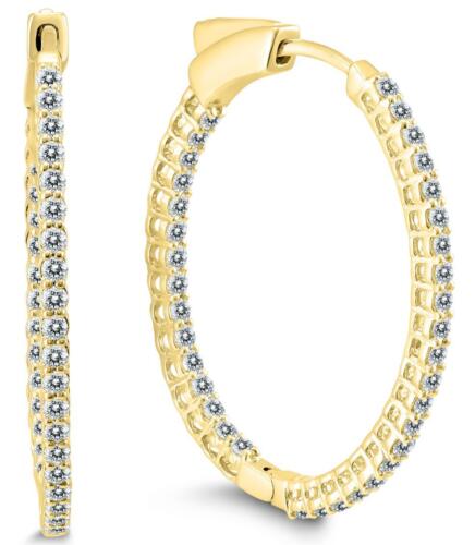 ESTATE 14KT YELLOW GOLD HOOP HANGING EARRINGS. 3D CLASSIC INSIDE OUT DESIGN. ROUND DIAMONDS ARE H/I COLOR, SI CLARITY 1.0 CARAT. WRITTEN APPRAISAL AVAILABLE. COMES IN A PRESENTABLE GIFT BOX.