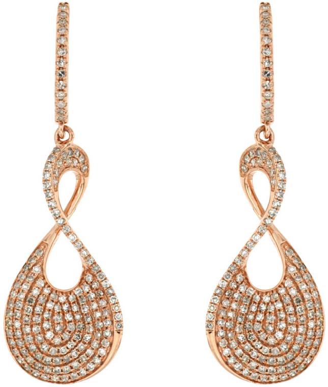 ESTATE 14KT ROSE GOLDLOVEHANGING EARRINGS. 3D MULTI ROW INFINITY DESIGN. DIAMONDS ARE F/G COLOR, VSSI CLARITY 1.00 CARATS. WRITTEN APPRAISAL AVAILABLE. COMES IN A PRESENTABLE GIFT BOX.