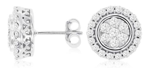 ESTATE 1CT DIAMOND 14KT WHITE GOLD 3D ROUND FLOWER HALO FILIGREE STUD EARRINGS