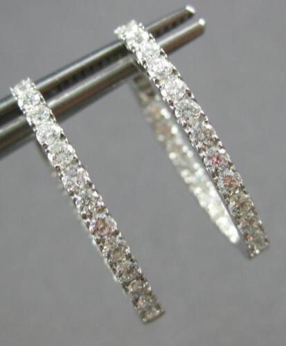 ESTATE 1CT DIAMOND 18K WHITE GOLD 3D ROUND INSIDE OUT OVAL HOOP HANGING EARRINGS