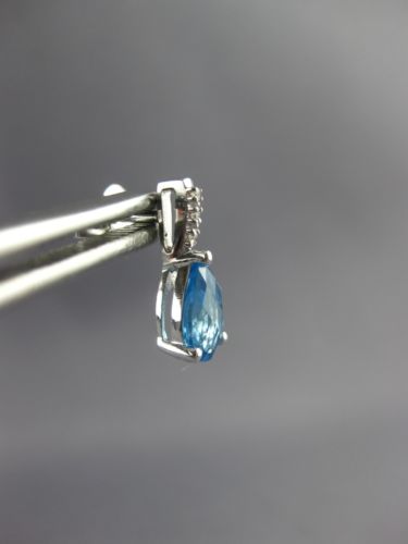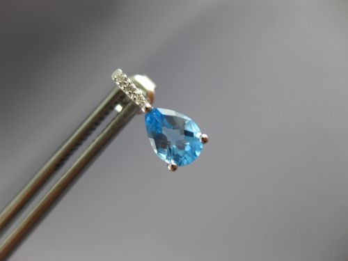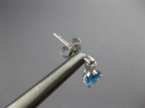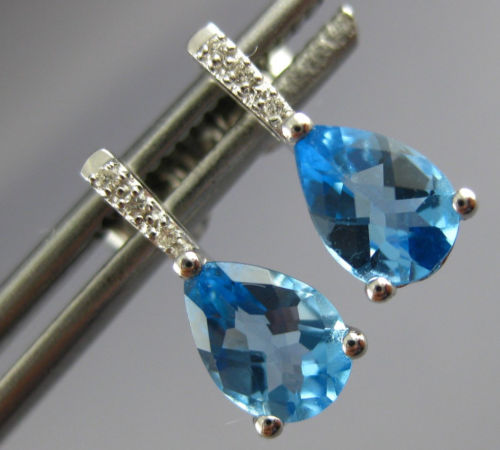 ESTATE 14KT WHITE GOLD HANGING EARRINGS. 3D PEAR SHAPE TEAR DROP DESIGN. DIAMONDS ARE F/G COLOR, VSSI CLARITY .02 CARATS. AAA BLUE TOPAZ IS 2.0 CARATS. MEASURES 12mm X 4mm. WRITTEN APPRAISAL AVAILABLE. COMES IN A PRESENTABLE GIFT BOX.