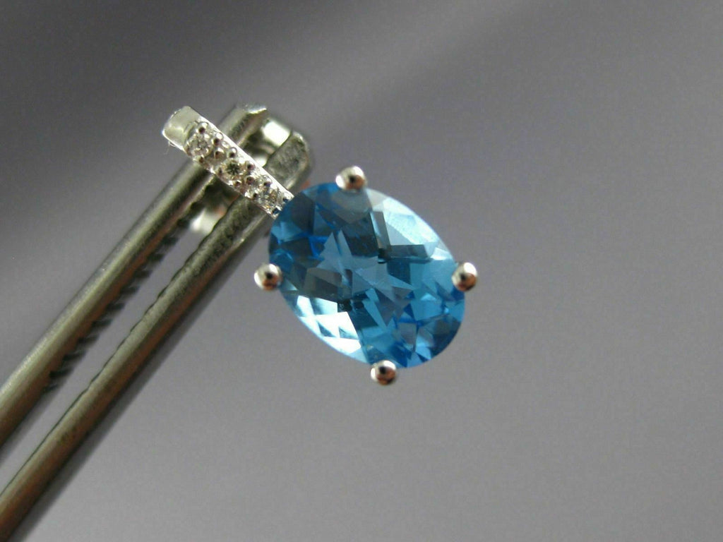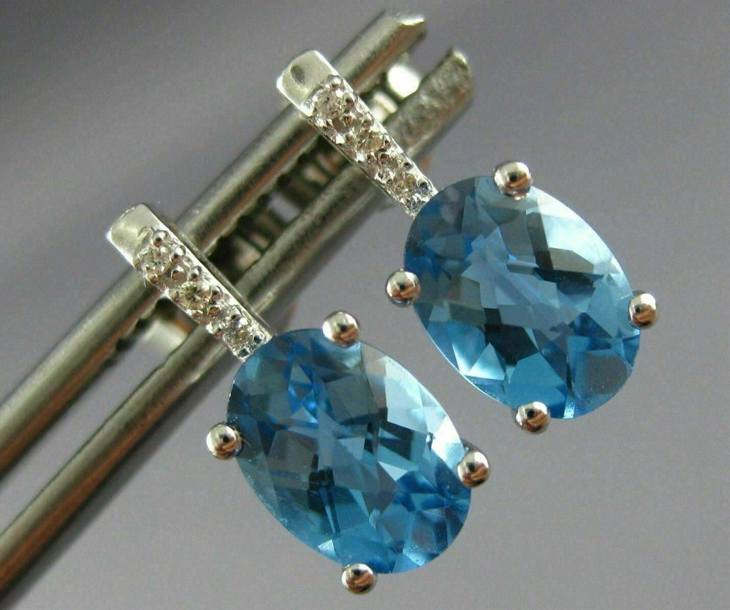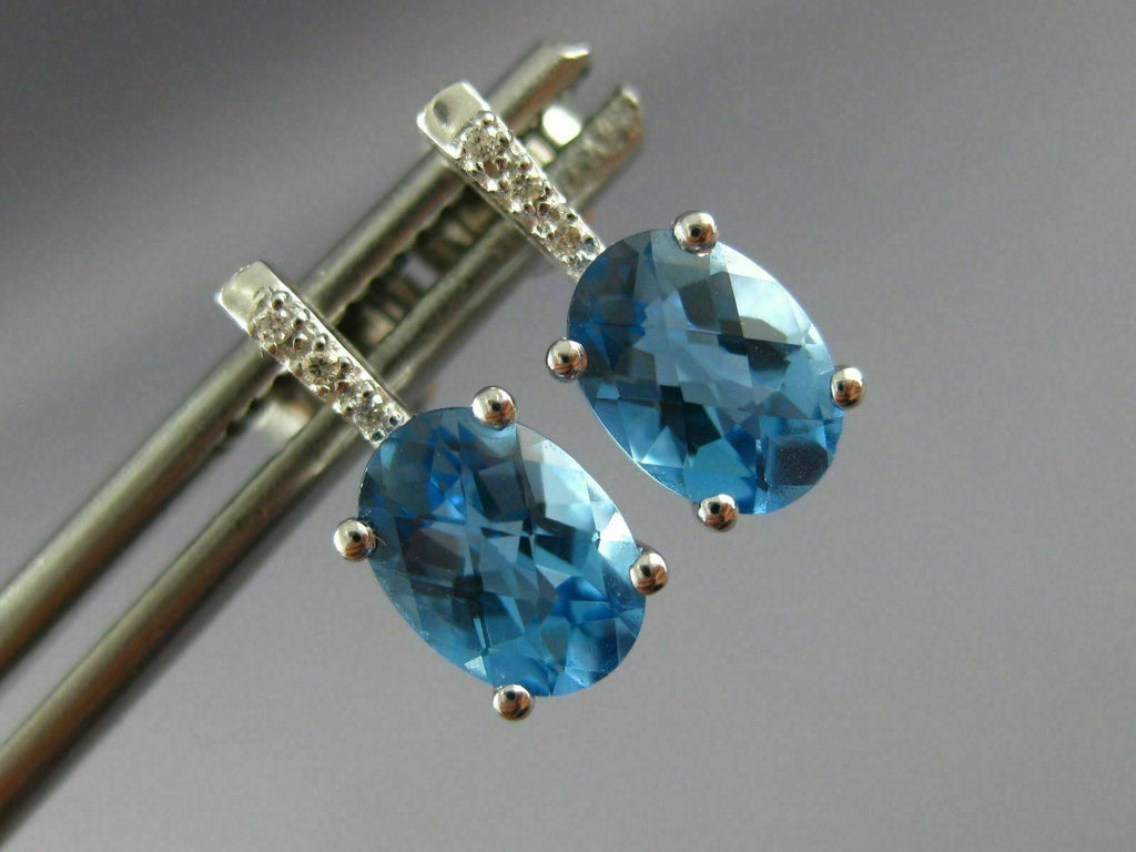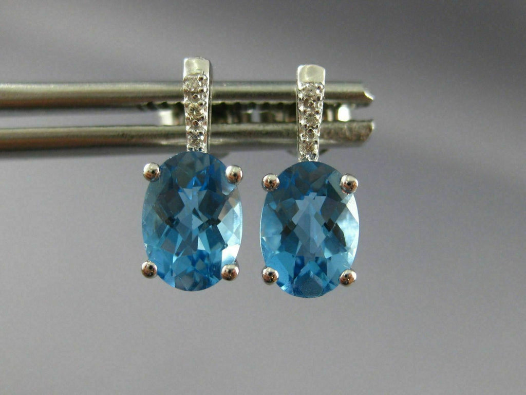 ESTATE 14KT WHITE GOLD HANGING EARRINGS. 3D OVAL CLASSIC DESIGN. DIAMONDS ARE F/G COLOR, VSSI CLARITY .02 CARATS. AAA BLUE TOPAZ IS 2.0 CARATS. MEASURES 12mm X 5mm. WRITTEN APPRAISAL AVAILABLE. COMES IN A PRESENTABLE GIFT BOX.