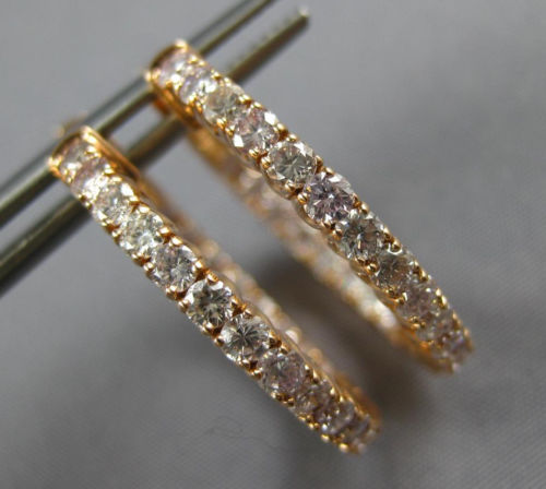 ESTATE 14KT ROSE GOLD HOOP EARRINGS. 3D CLASSIC 2MM DOUBLE SIDED DESIGN. DIAMONDS ARE F/G COLOR, VSSI CLARITY 2.04 CARATS. MEASURES 23MM X 3MM. WRITTEN APPRAISAL AVAILABLE. COMES IN A PRESENTABLE GIFT BOX.