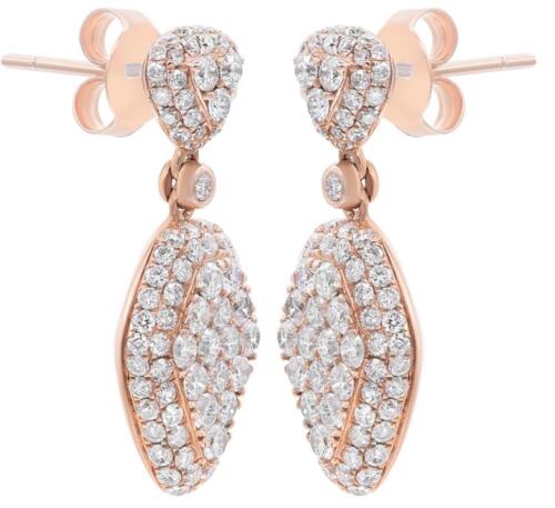 ESTATE 14KT ROSE GOLD FUN HANGING EARRINGS. 3D CLUSTER TEAR DROP DESIGN. DIAMONDS ARE F/G COLOR, VSSI CLARITY 2.05 CARATS. WRITTEN APPRAISAL AVAILABLE. COMES IN A PRESENTABLE GIFT BOX.