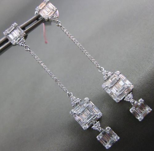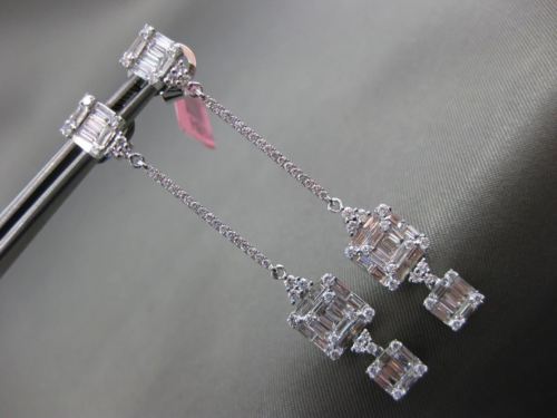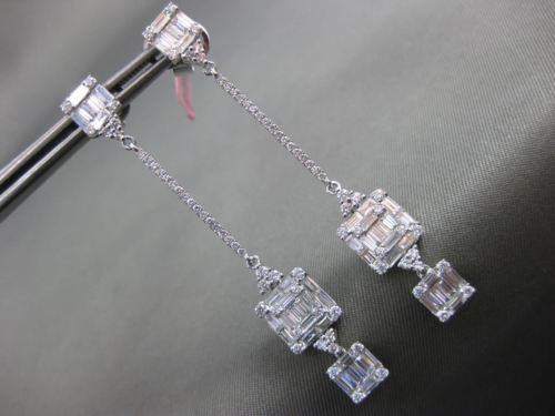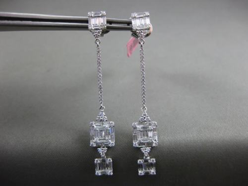 ESTATE 2.06CT DIAMOND 18KT WHITE GOLD CLUSTER SQUARE HANGING CHANDELIER EARRINGS