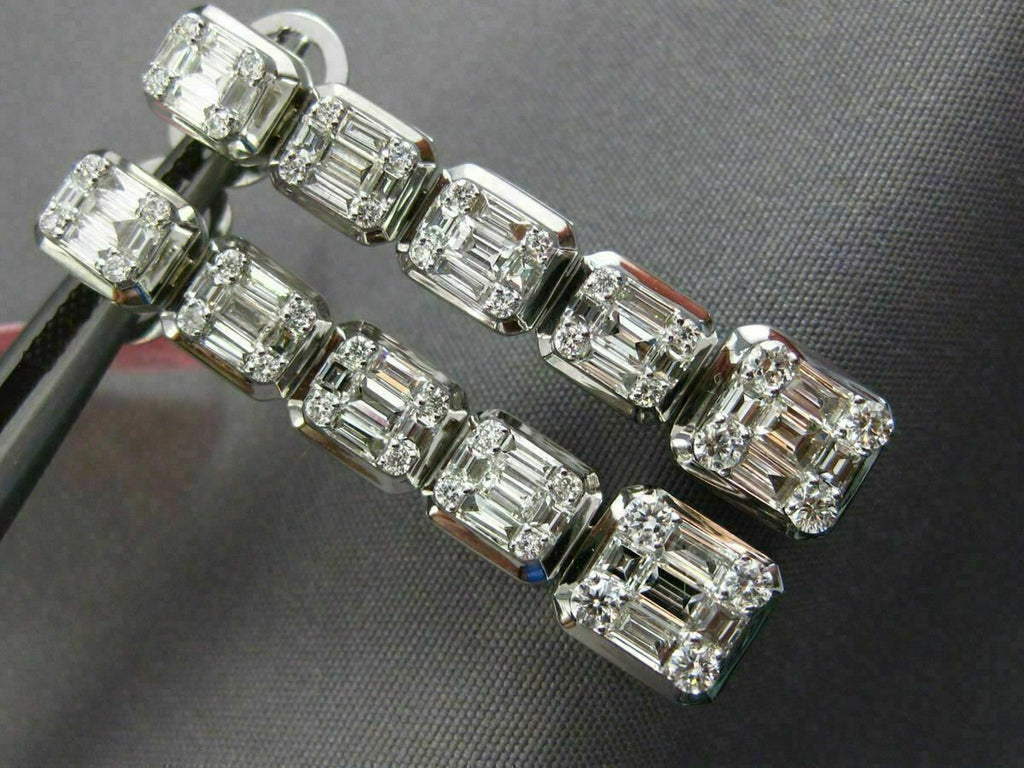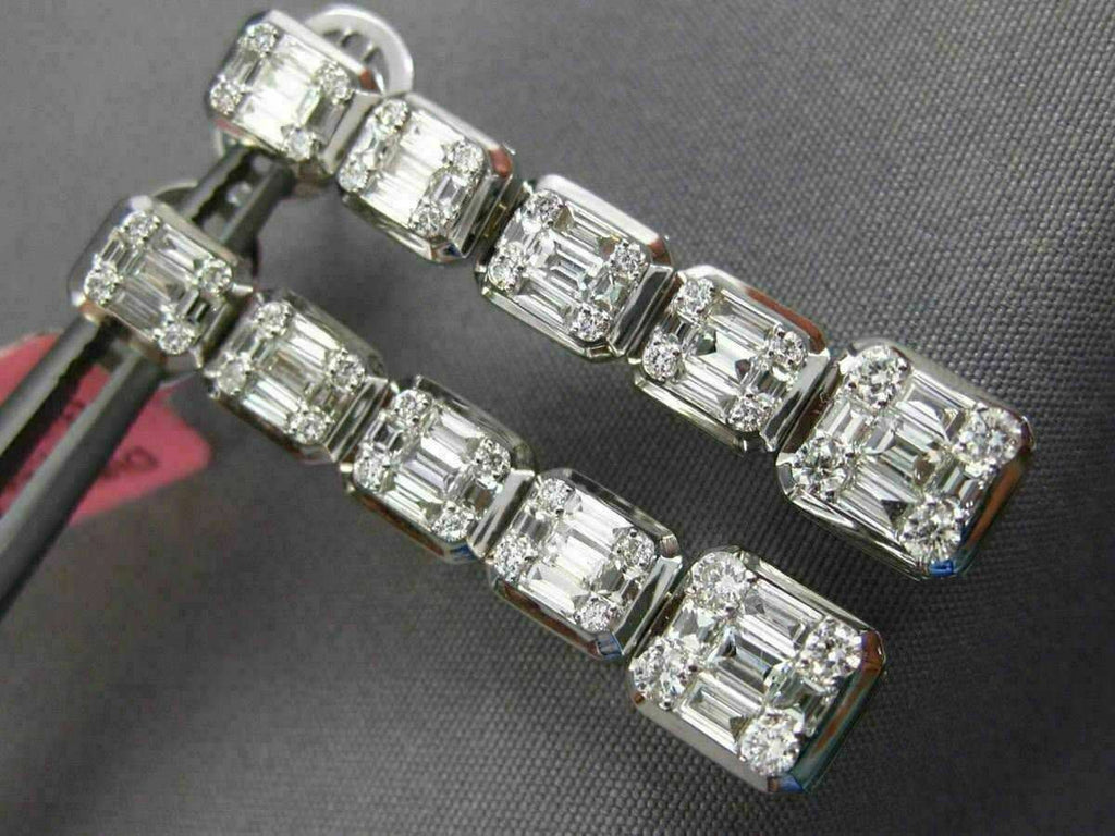 ESTATE 2.09CT DIAMOND 18KT WHITE GOLD ELONGATED SQUARE JOURNEY HANGING EARRINGS