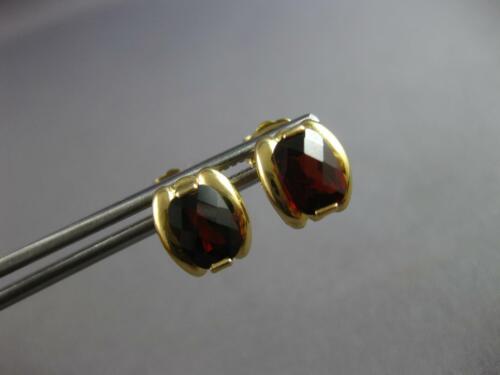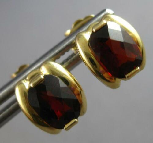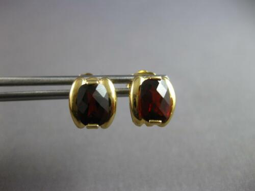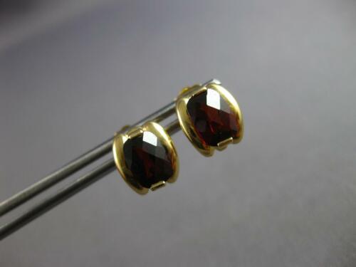ESTATE 14KT YELLOW GOLD STUD HANGING EARRINGS. 3D CLASSIC DESIGN. AAA EXTRA FACETED CUSHION CUT GARNETS ARE 2.0 CARATS. GARNETS MEASURE 4.5mm X 2mm. EARRINGS MEASURE 9mm X 8mm. WRITTEN APPRAISAL AVAILABLE. COMES IN A PRESENTABLE GIFT BOX.