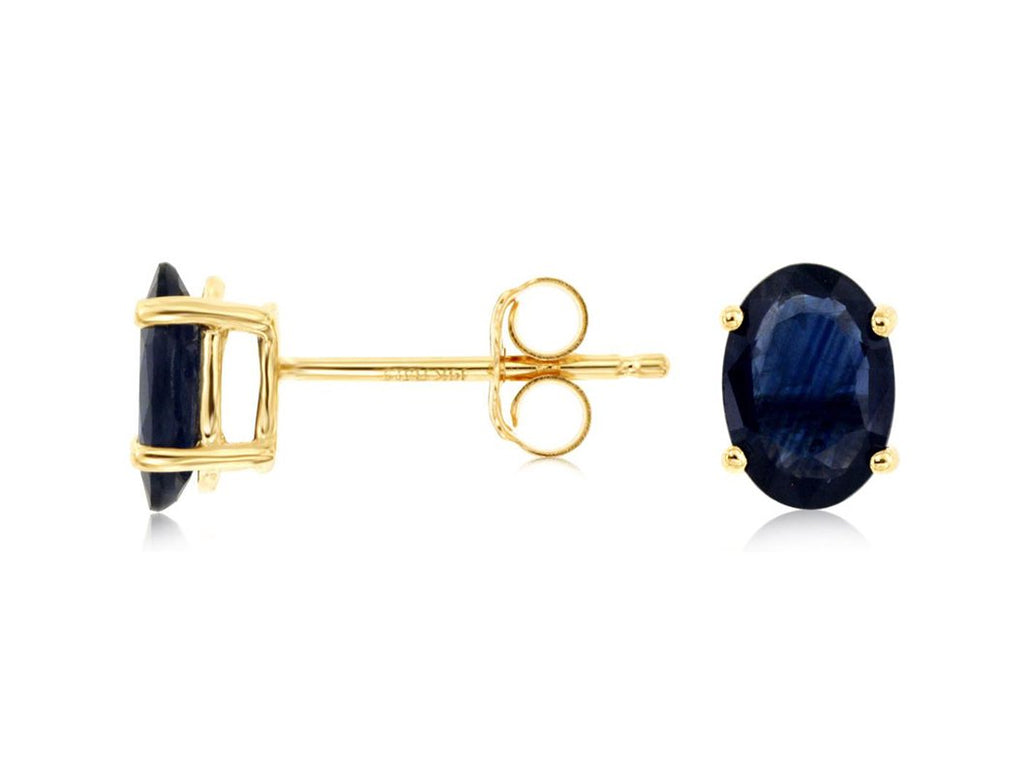 ESTATE 14KT YELLOW GOLD STUD EARRINGS. 3D CLASSIC FOUR PRONG DESIGN. AAA OVAL SAPPHIRES ARE 2.0 CARATS. WRITTEN APPRAISAL AVAILABLE. COMES IN A PRESENTABLE GIFT BOX.