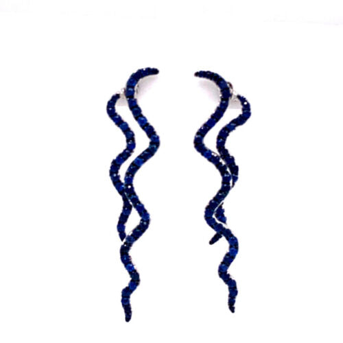 ESTATE 18KT WHITE GOLD FUN HANGING EARRINGS. 3D DOUBLE SNAKE DESIGN. AAA SAPPHIRES ARE 2.0 CARATS.