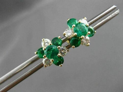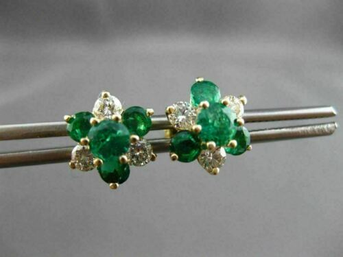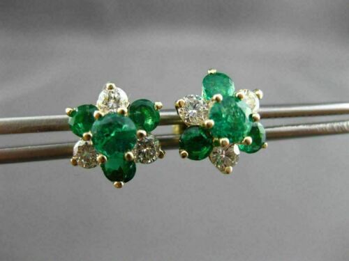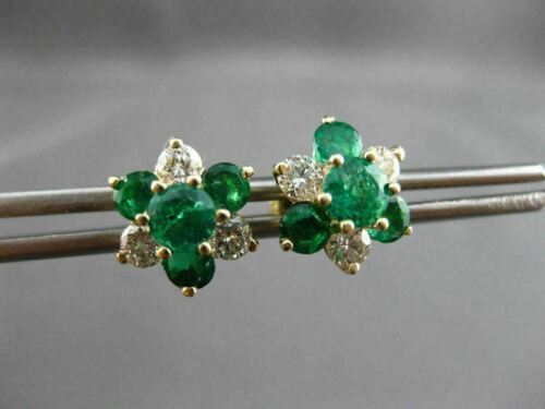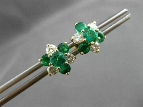 ESTATE 2.0CT DIAMOND & EMERALD 14KT YELLOW GOLD 3D FLOWER CLUSTER EARRINGS 24555