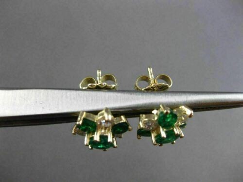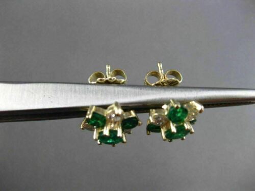 ESTATE 14KT YELLOW GOLD STUD EARRINGS. 3D FLOWER CLUSTER SNOWFLAKE DESIGN. DIAMOND ARE F/G COLOR, VS CLARITY .50 CARATS. AAA COLOMBIAN EMERALDS ARE 1.50 CARATS. MEASURES 10mm WIDE. WRITTEN APPRAISAL AVAILABLE. COMES IN A PRESENTABLE GIFT BOX.