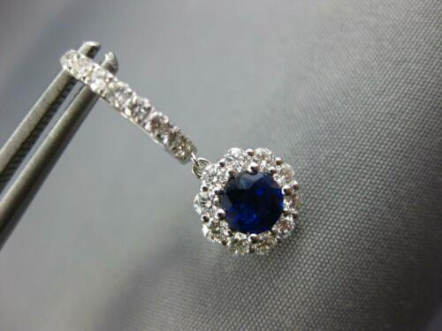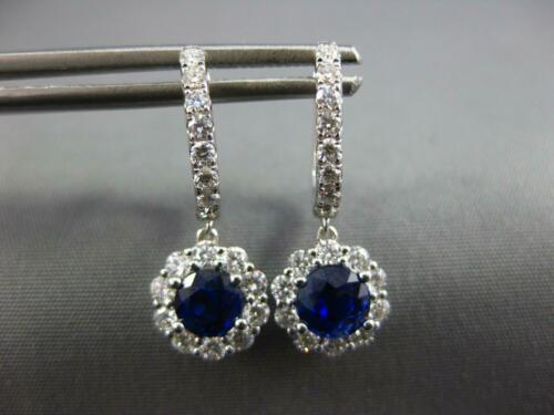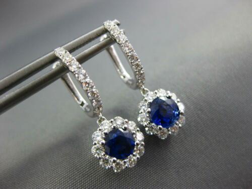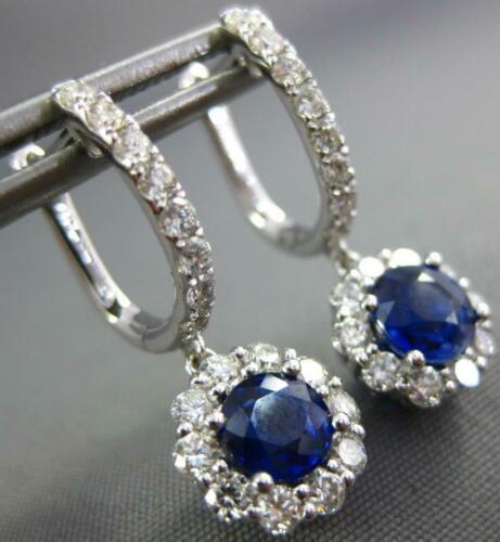 ESTATE 18KT WHITE GOLD HANGING EARRINGS. 3D CLASSIC FLOWER DESIGN. DIAMONDS ARE F/G COLOR, VSSI CLARITY .80 CARATS. AAA SAPPHIRES ARE 1.20 CARATS. MEASURES 8mm X 22mm. WRITTEN APPRAISAL AVAILABLE. COMES IN A PRESENTABLE GIFT BOX.