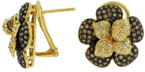 ESTATE 2.0CT WHITE & CHOCOLATE FANCY DIAMOND 14KT YELLOW GOLD 3D FLOWER EARRINGS