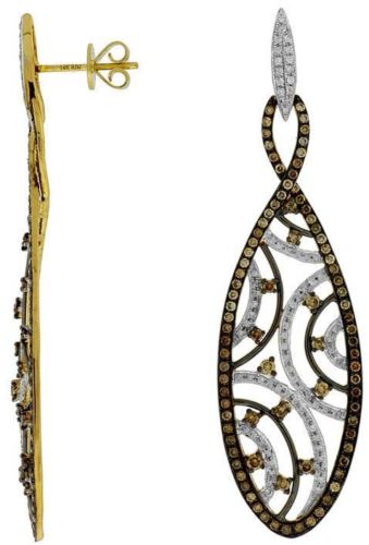 ESTATE 14KT YELLOW GOLD EARRINGS. 3D CLASSIC MULTI ROW DESIGN. DIAMONDS ARE F/G COLOR, VSSI CLARITY .35 CARATS. MOCHA DIAMONDS ARE 1.75 CARATS. WRITTEN APPRAISAL AVAILABLE. COMES IN A PRESENTABLE GIFT BOX.