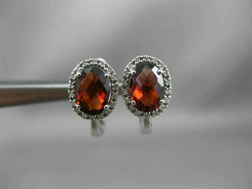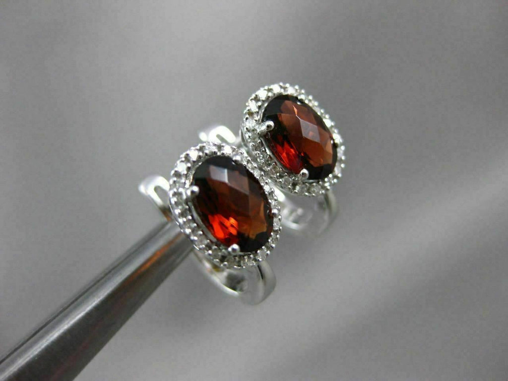 ESTATE 14KT WHITE GOLD LEVERBACK EARRINGS. 3D OVAL HALO FILIGREE HEART DESIGN. DIAMONDS ARE F/G COLOR, VSSI CLARITY .11 CARATS. AAA EXTRA FACET GARNETS ARE 2.0 CARATS. MEASURES 14mm X 7mm WIDE. WRITTEN APPRAISAL AVAILABLE. COMES IN A PRESENTABLE GIFT BOX