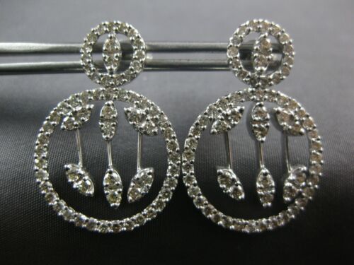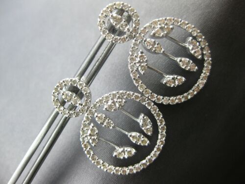 ESTATE 14KT WHITE GOLD HANGING EARRINGS. 3D ROUND AND MARQUISE SHAPE CIRCULAR DESIGN. DIAMONDS ARE F/G COLOR, VSSI CLARITY 2.15 CARATS. MEASURES 27.5mm X 19mm. WRITTEN APPRAISAL AVAILABLE. COMES IN A PRESENTABLE GIFT BOX.