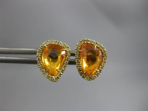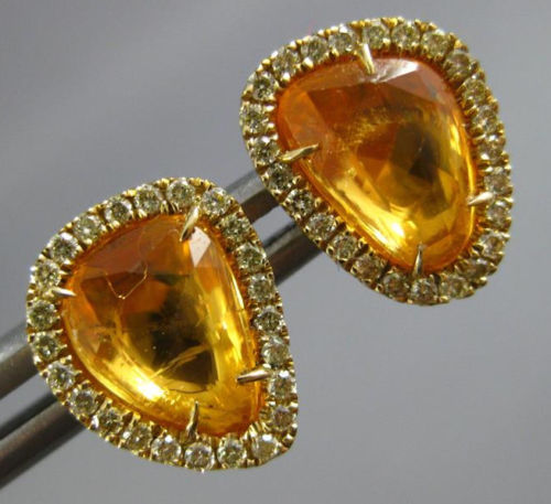 ESTATE 18KT YELLOW GOLD STUD EARRINGS. 3D TRIANGULAR HALO DESIGN. DIAMONDS ARE F/G COLOR, VSSI CLARITY .21 CARATS. AAA YELLOW SAPPHIRES ARE 1.95 CARATS. MEASURES 10mm X 8mm. WRITTEN APPRAISAL AVAILABLE. COMES IN A PRESENTABLE GIFT BOX.
