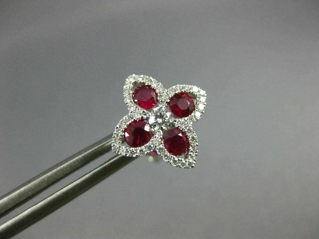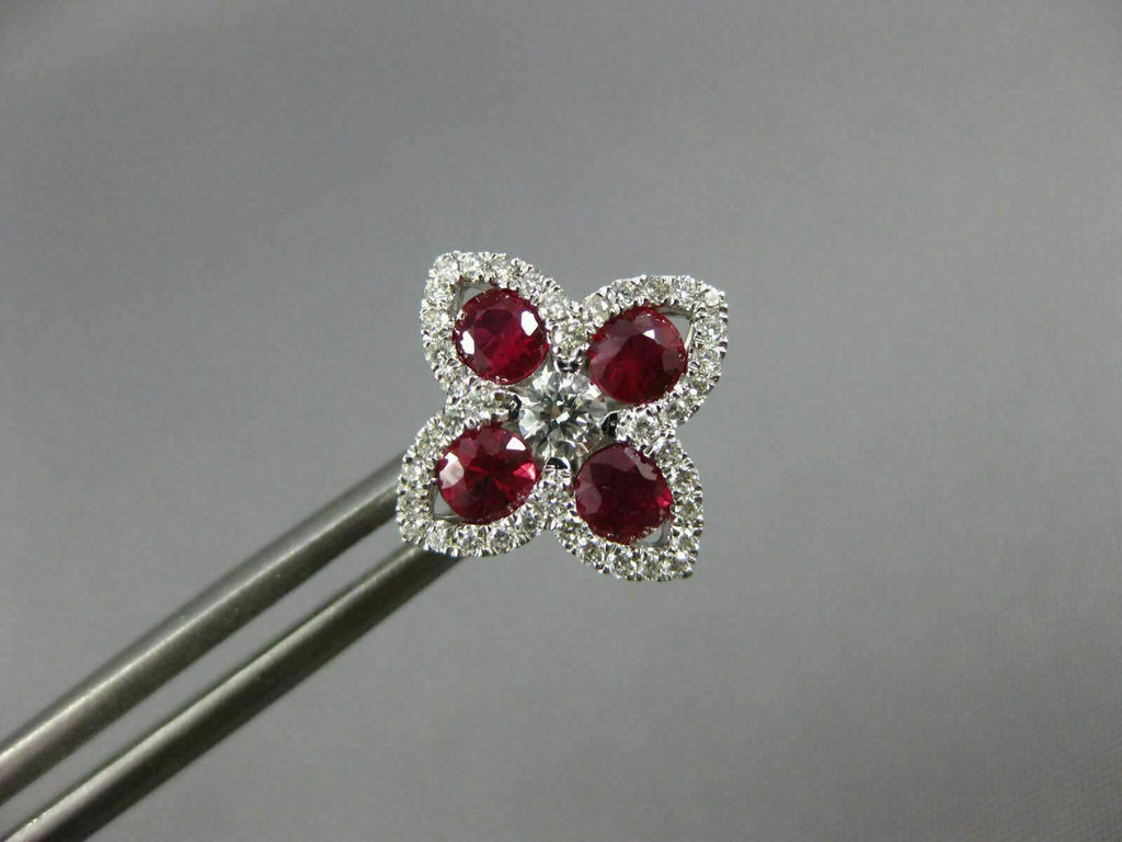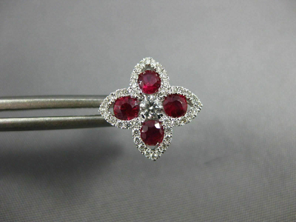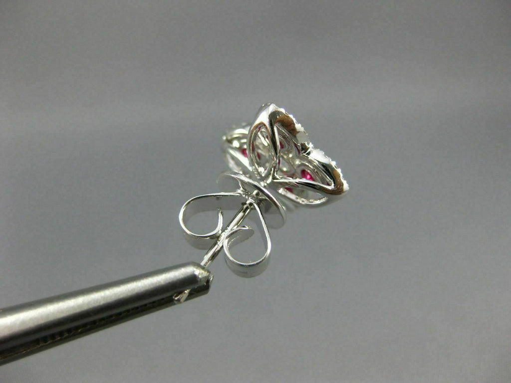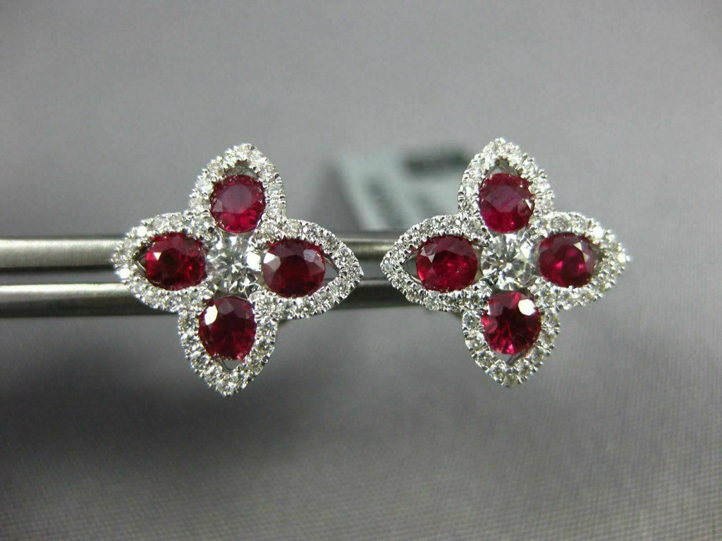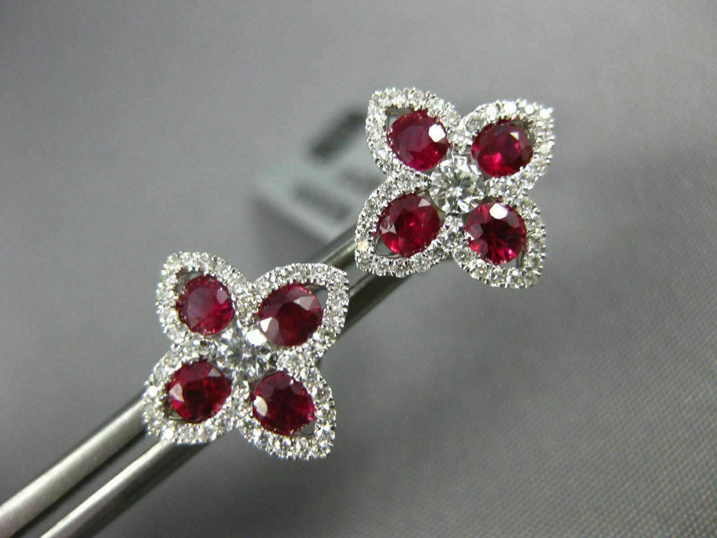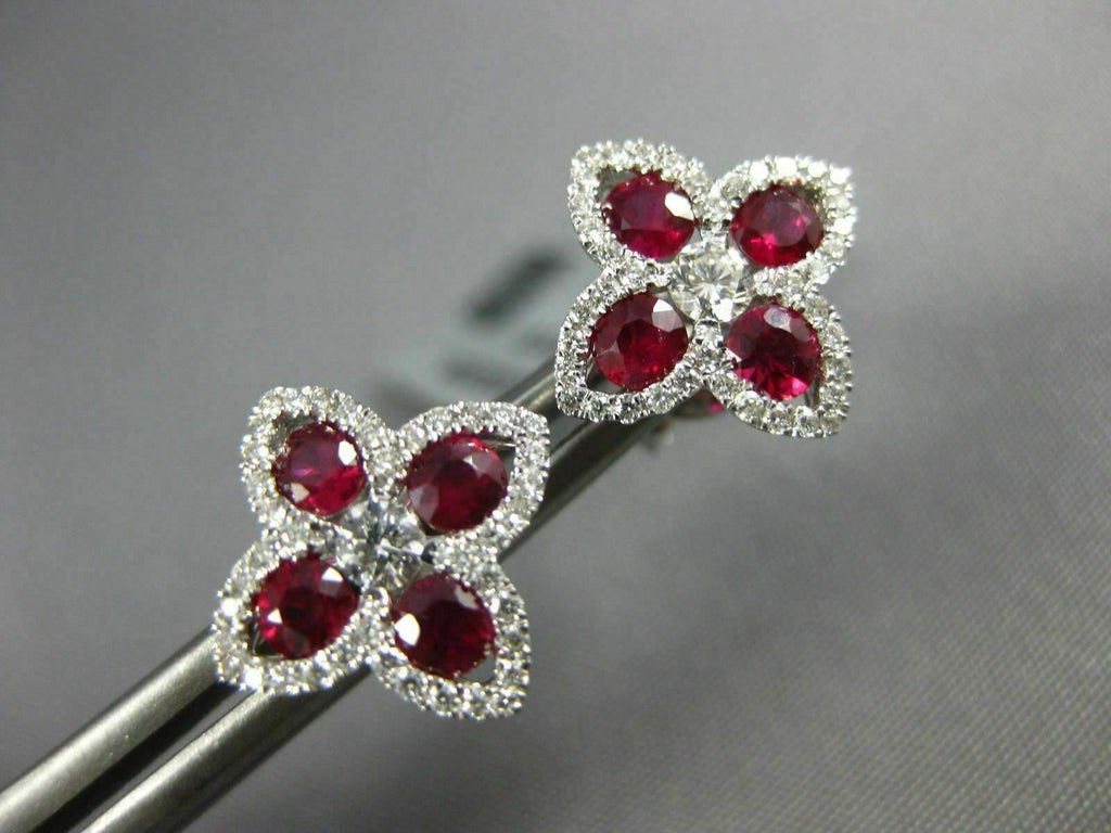 ESTATE 2.19CT DIAMOND & AAA RUBY 18KT WHITE GOLD 3D FLOWER CLASSIC STUD EARRINGS