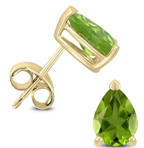 ESTATE 14KT YELLOW GOLD STUD EARRINGS. 3D CLASSIC SOLIATIRE DESIGN. AAA PEAR SHAPE PERIDOTS ARE 2.1 CARATS. WRITTEN APPRAISAL AVAILABLE. COMES IN A PRESENTABLE GIFT BOX.
