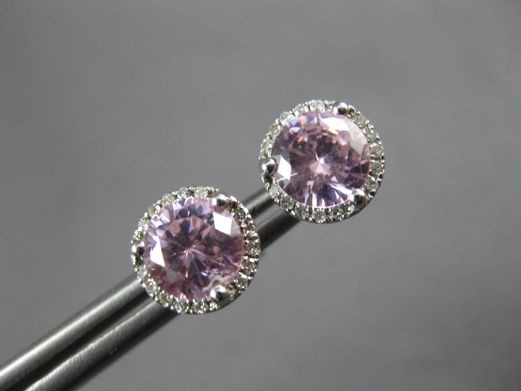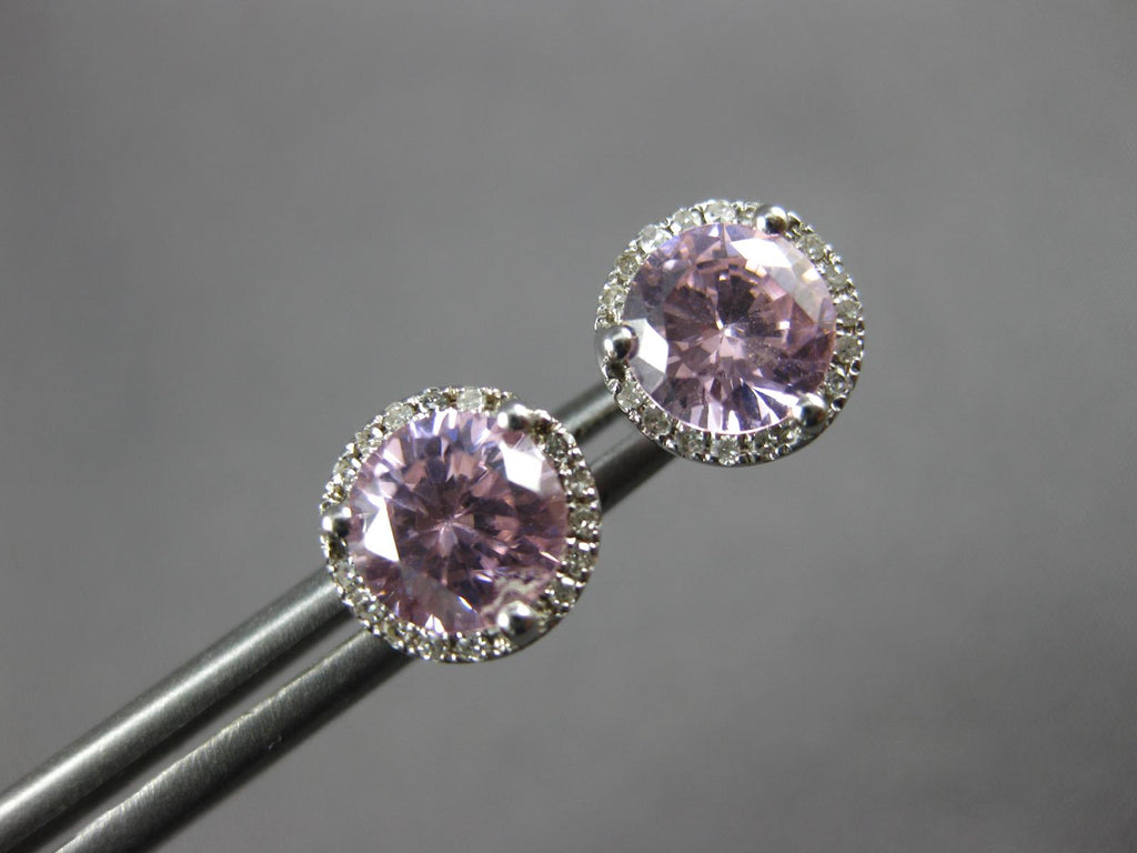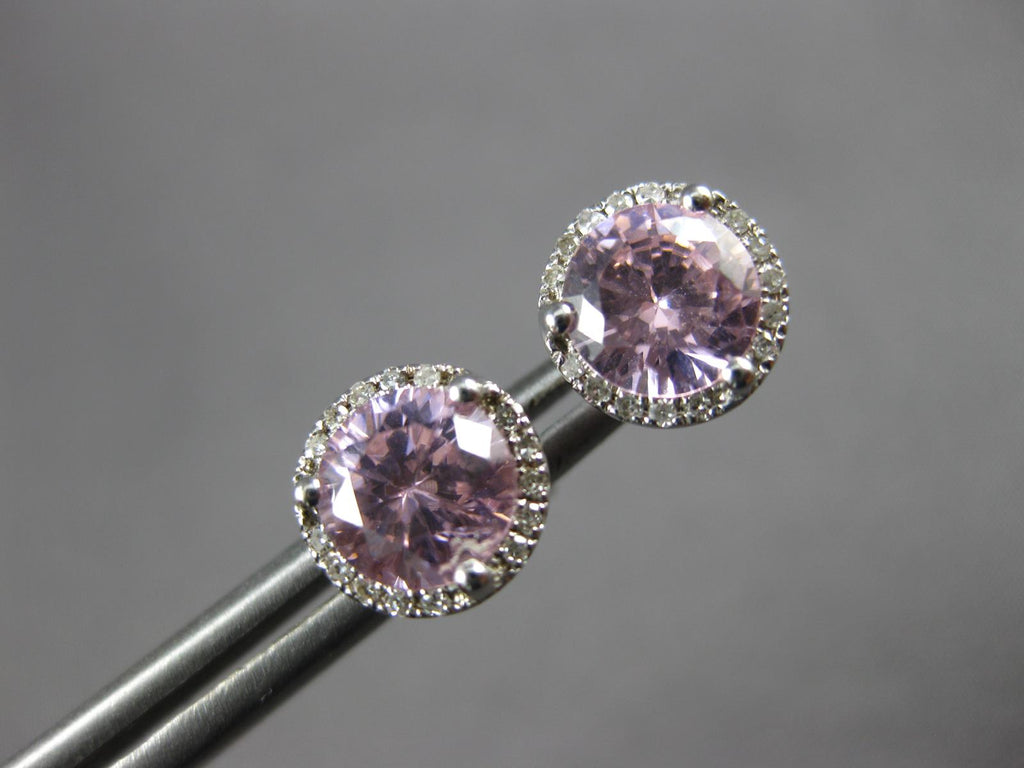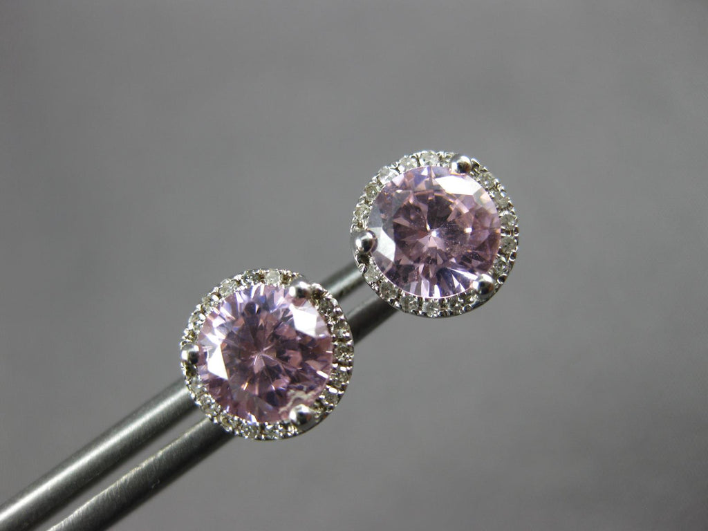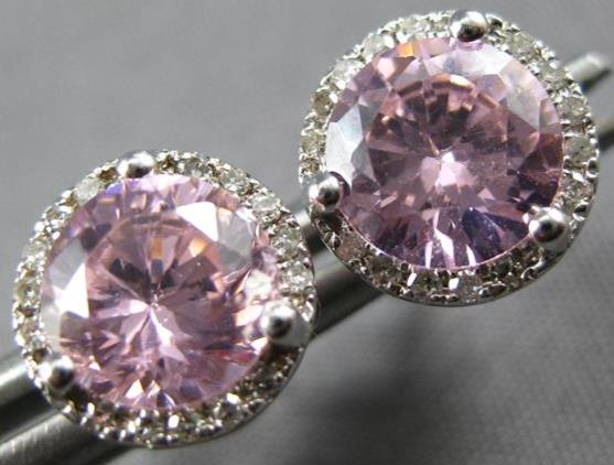 ESTATE 14KT WHITE GOLD STUD EARRINGS. 3D CLASSIC HALO MARTINI DESIGN. DIAMONDS ARE F/G COLOR, VSSI CLARITY .10 CARATS. AAA ROUND PINK QUARTZES ARE 2.0 CARATS. MEASURES 7.6mm WIDE. WRITTEN APPRAISAL AVAILABLE. COMES IN A PRESENTABLE GIFT BOX.