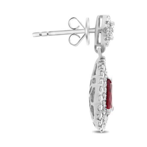 ESTATE 2.25CT DIAMOND & AAA RUBY 18K WHITE GOLD PEAR SHAPE HALO HANGING EARRINGS