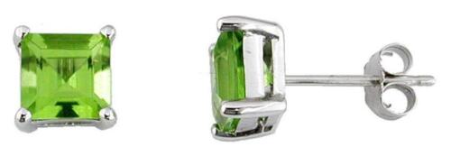 ESTATE 14KT WHITE GOLD STUD EARRINGS. 3D CLASSIC DESIGN. AAA EXTRA FACETED PRINCESS CUT PERIDOTS ARE 2.30 CARATS. WRITTEN APPRAISAL AVAILABLE. COMES IN A PRESENTABLE GIFT BOX.