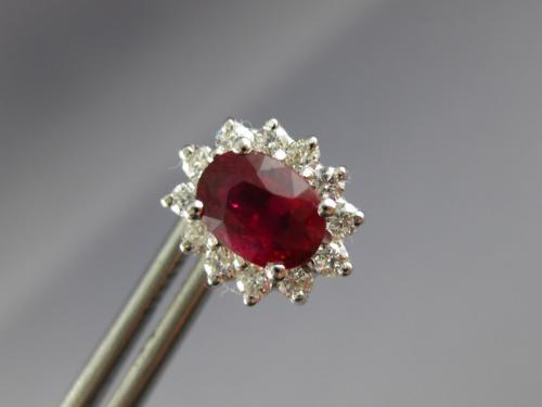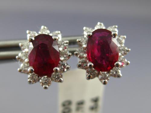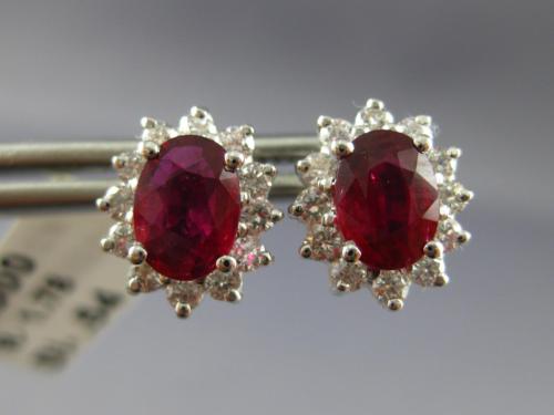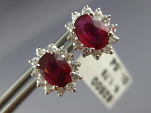 ESTATE 2.32CT DIAMOND & AAA RUBY 14K WHITE GOLD OVAL FLOWER STUD EARRINGS #25794