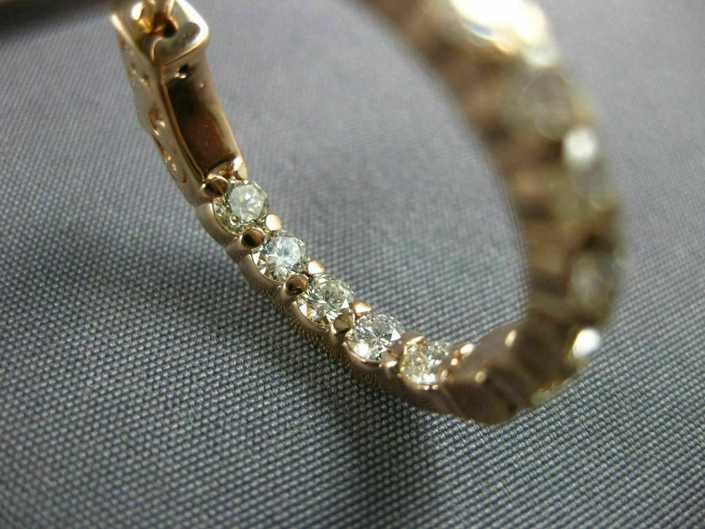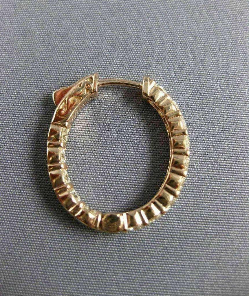 ESTATE 14KT ROSE GOLD HOOP EARRINGS. 3D ROUND CLASSIC INSIDE OUT OVAL DESIGN. ROUND DIAMONDS ARE F/G COLOR, VSSI CLARITY 2.40 CARATS. MEASURES 3mm X 22mm. WRITTEN APPRAISAL AVAILABLE. COMES IN A PRESENTABLE GIFT BOX