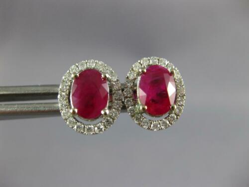ESTATE 2.41CT DIAMOND & AAA RUBY 14KT WHITE GOLD 3D OVAL & ROUND STUD EARRINGS