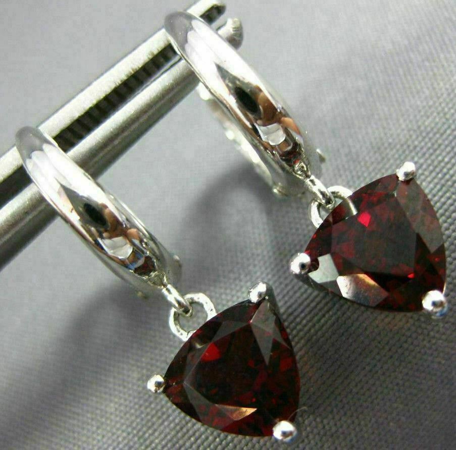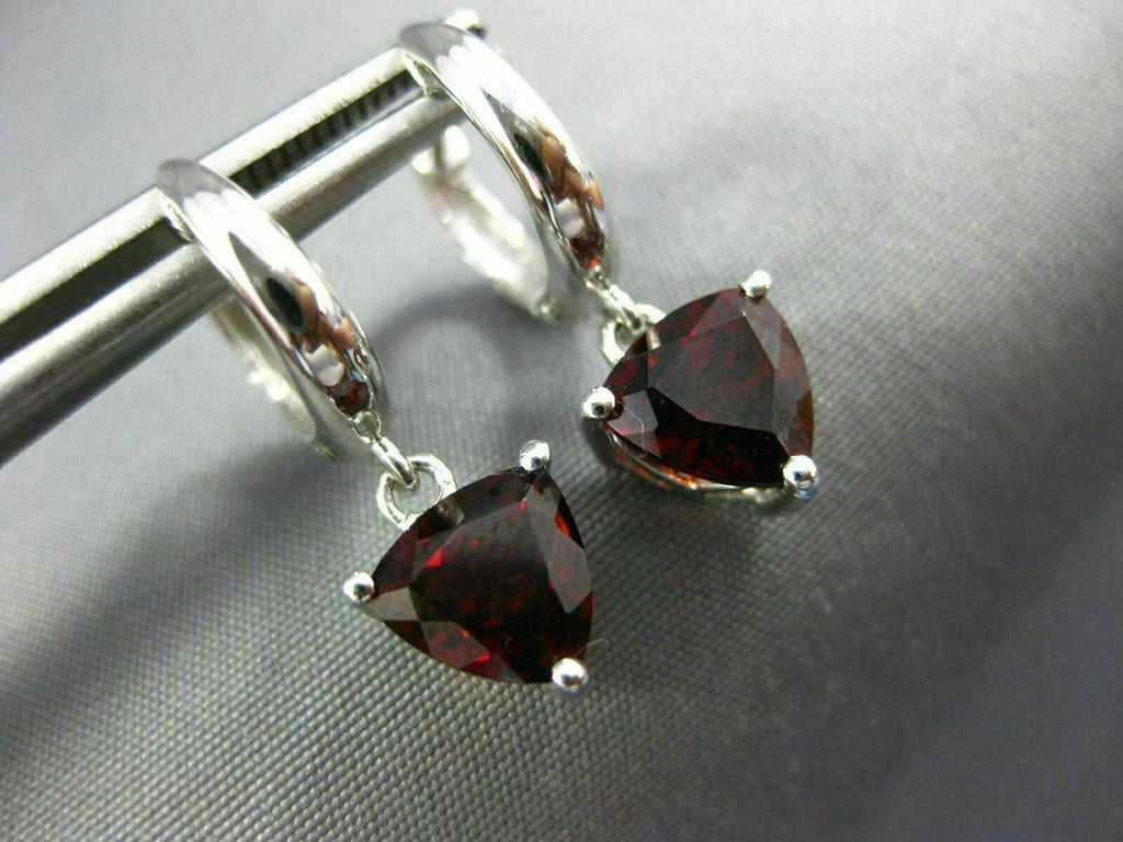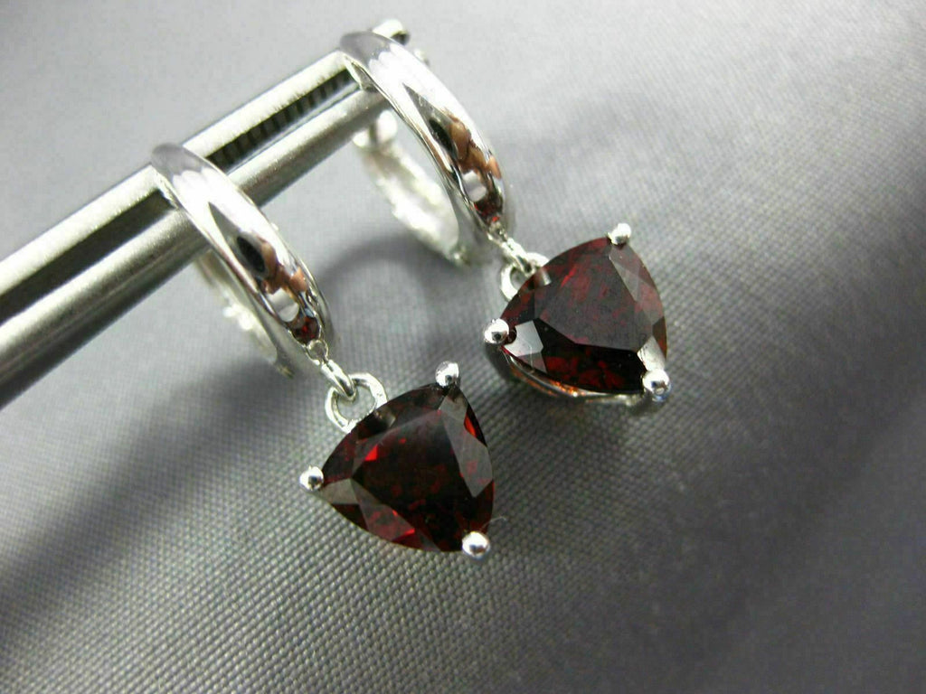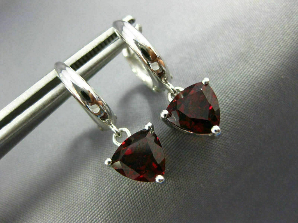 ESTATE 2.48CT AAA GARNET 14KT WHITE GOLD 3D TRILLION HANGING HUGGIE EARRINGS