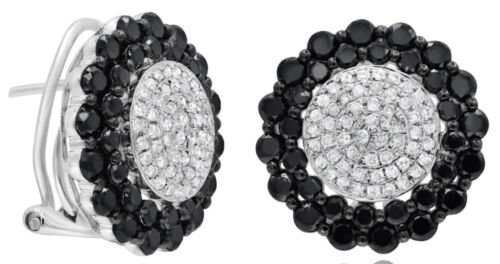 ESTATE 14KT WHITE GOLD CLIP ON EARRINGS. 3D FLOWER DESIGN. ROUND WHITE DIAMONDS ARE F/G COLOR, VSSI CLARITY .43 CARATS. ROUND BLACK DIAMONDS ARE 2.22 CARATS. WRITTEN APPRAISAL AVAILABLE. COMES IN A PRESENTABLE GIFT BOX.
