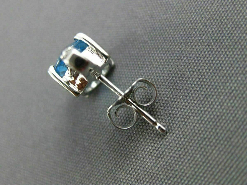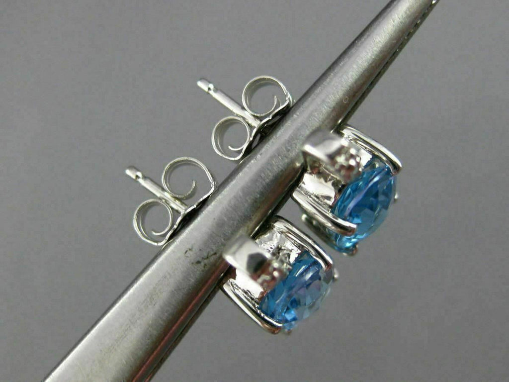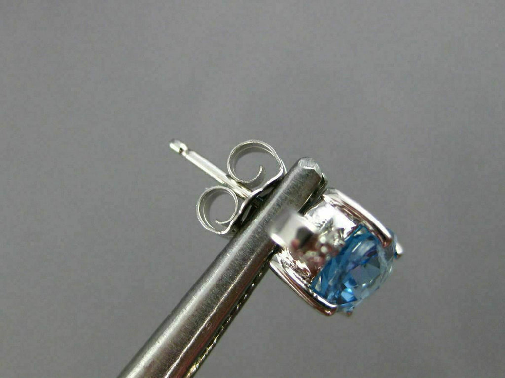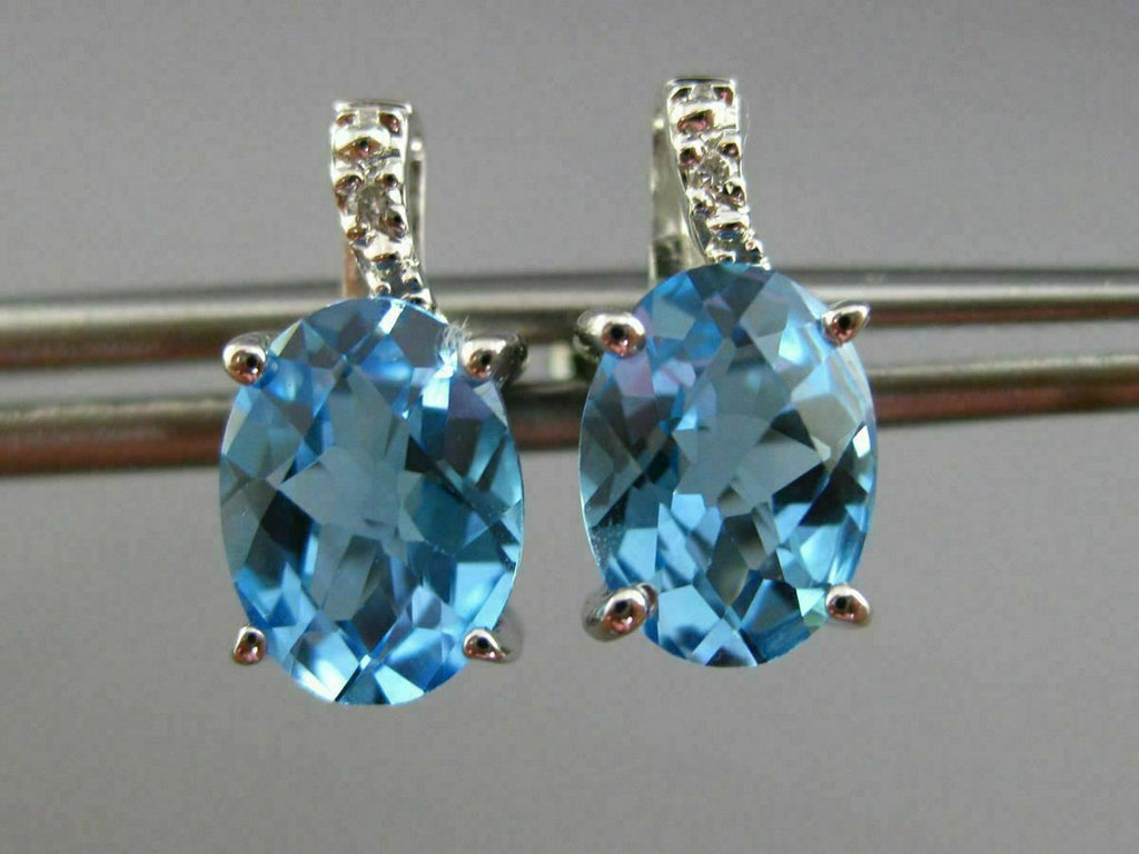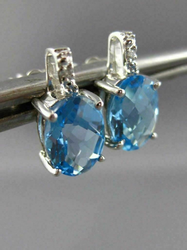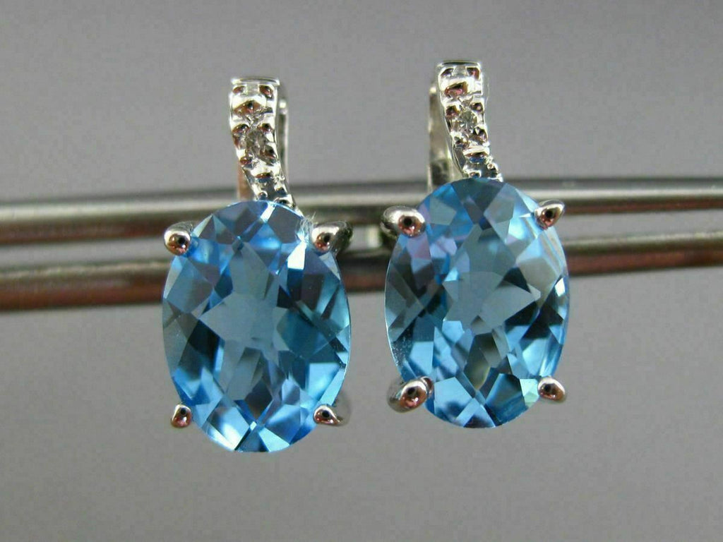 ESTATE 14KT WHITE GOLD STUD EARRINGS. 3D DESIGN. DIAMONDS ARE F/G COLOR, VSSI CLARITY .02 CARATS. AAA EXTRA FACET BLUE TOPAZ ARE 2.70 CARATS. MEASURES 12mm X 6mm WIDE. WRITTEN APPRAISAL AVAILABLE. COMES IN A PRESENTABLE GIFT BOX