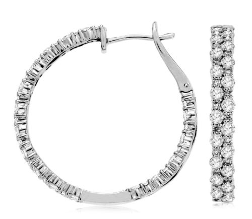 ESTATE 14KT WHITE GOLD HOOP EARRINGS. 3D DOUBLE ROW INSIDE OUT DESIGN. DIAMONDS ARE F/G COLOR, VSSI CLARITY 2.75 CARATS. WRITTEN APPRAISAL AVAILABLE. COMES IN A PRESENTABLE GIFT BOX.
