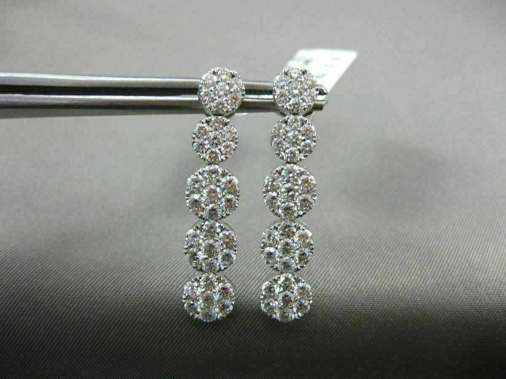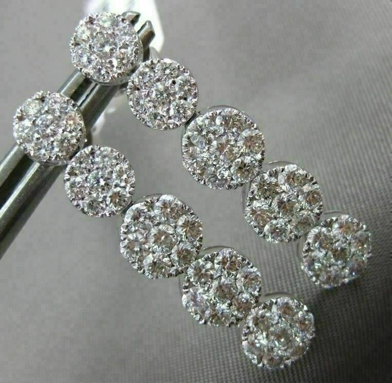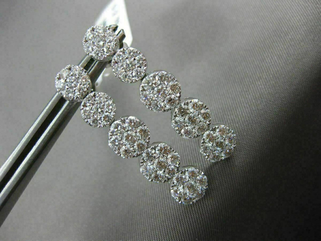 ESTATE 2.79CT ROUND DIAMOND 18KT WHITE GOLD 3D CLUSTER JOURNEY HANGING EARRINGS