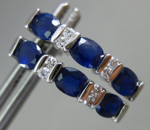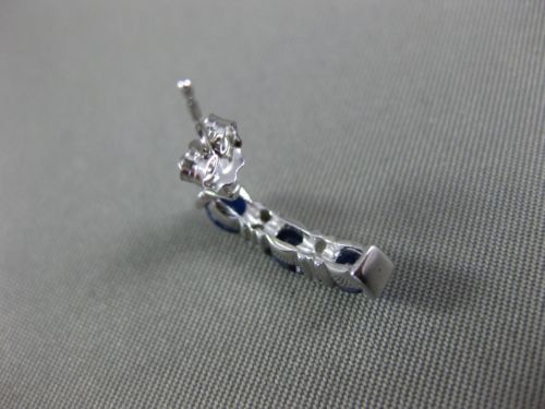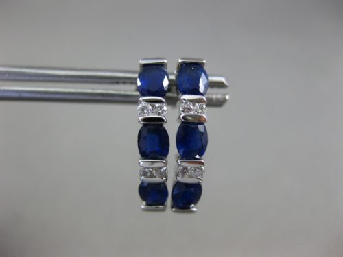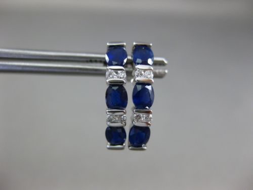 ESTATE 14KT WHITE GOLD HANGING EARRINGS. 3D MULTI SHAPE DESIGN. ROUND CUT DIAMONDS ARE F/G COLOR, VSSI CLARITY .10 CARATS. AAA OVAL SAPPHIRES ARE 2.60 CARATS. MEASURES 15mm X 3mm. WRITTEN APPRAISAL AVAILABLE. COMES IN A PRESENTABLE GIFT BOX.