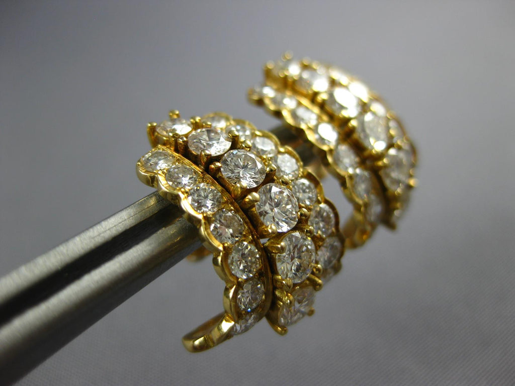 ESTATE 18KT YELLOWGOLD HANGING EARRINGS. 3D THREE ROWTIFFANY AND CO SCREW BACKDESIGN. DIAMONDS ARE F/G COLOR, VSSI CLARITY 2.80 CARATS.MEASURES 17mm X 12mm. WRITTEN APPRAISAL AVAILABLE. COMES IN A PRESENTABLE GIFT BOX.